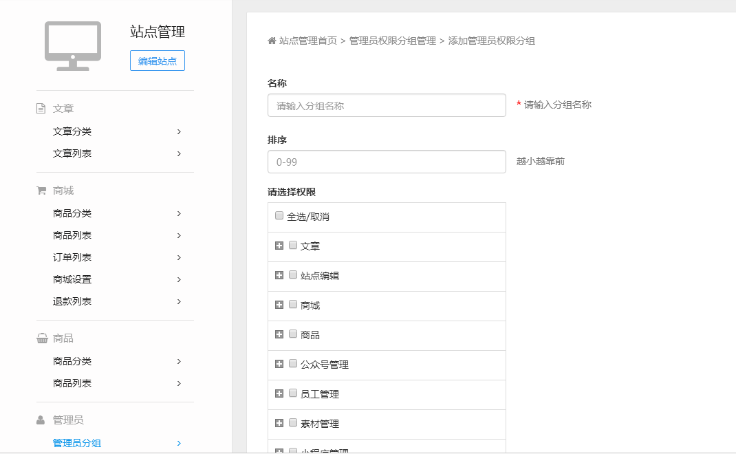 在管理员模块,您可以给不同管理员分配账号并设置权限。